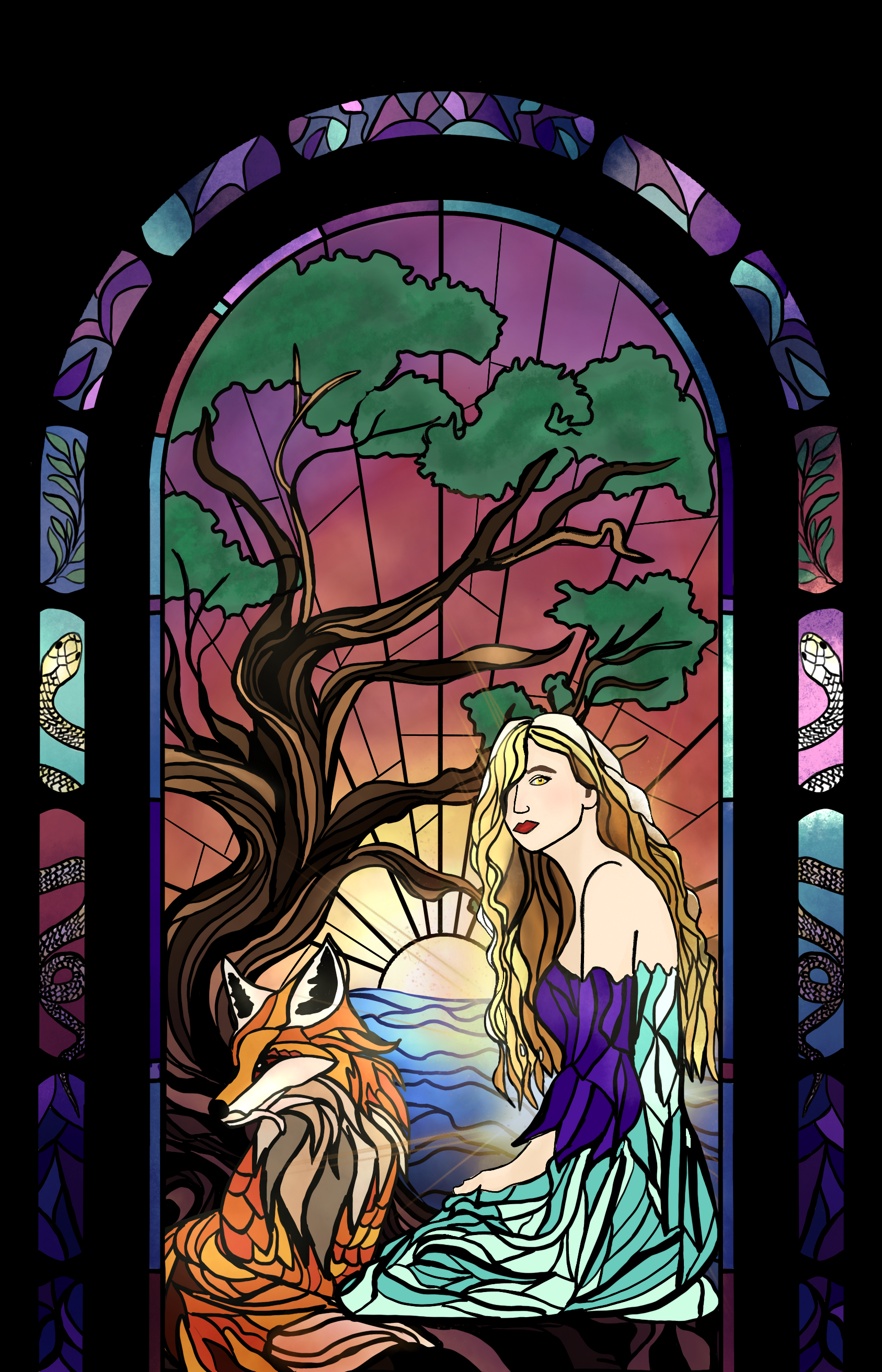 Detailed Stained Glass-Two Characters: $300