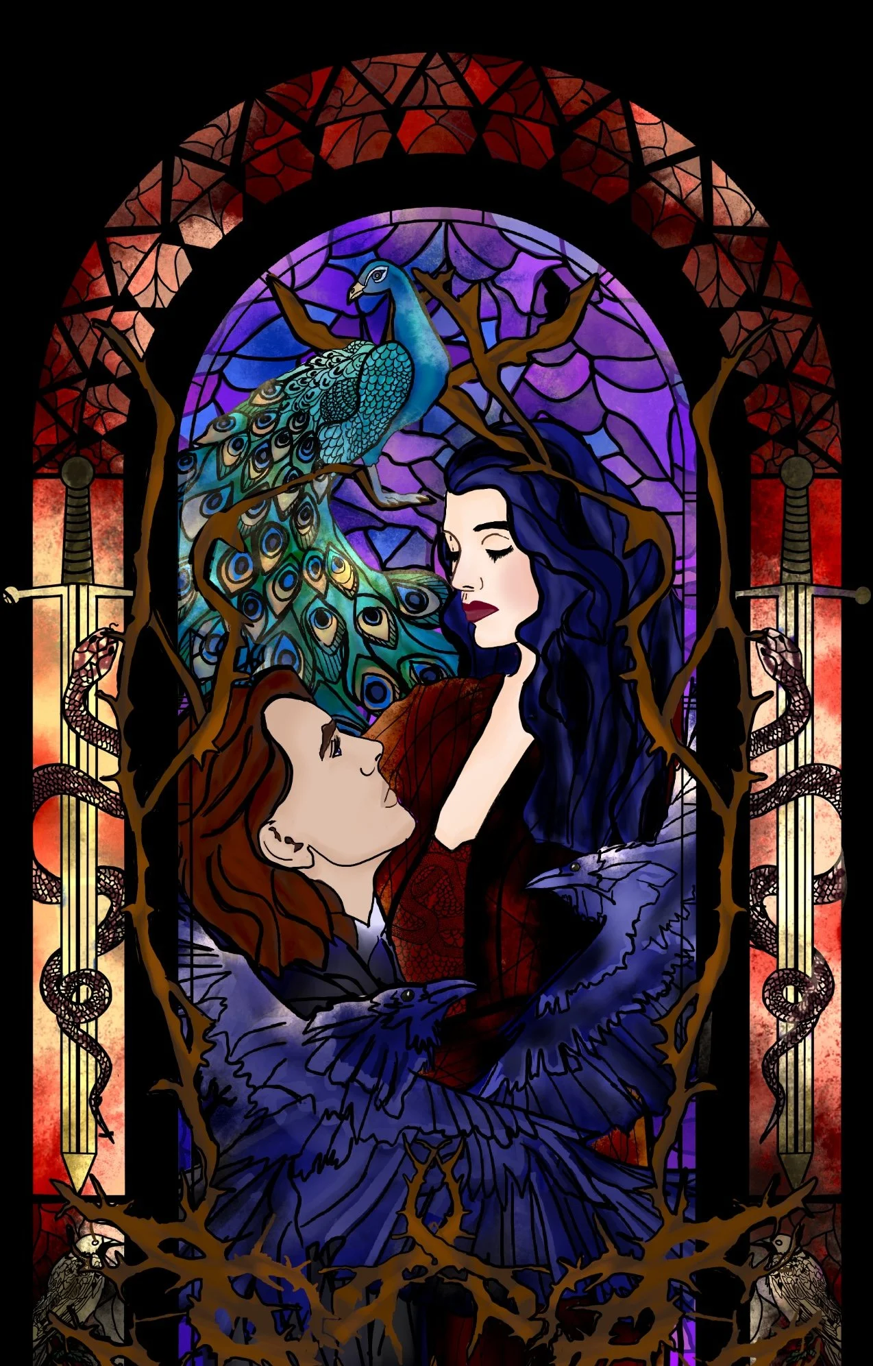 Detailed Stained Glass-Two Characters